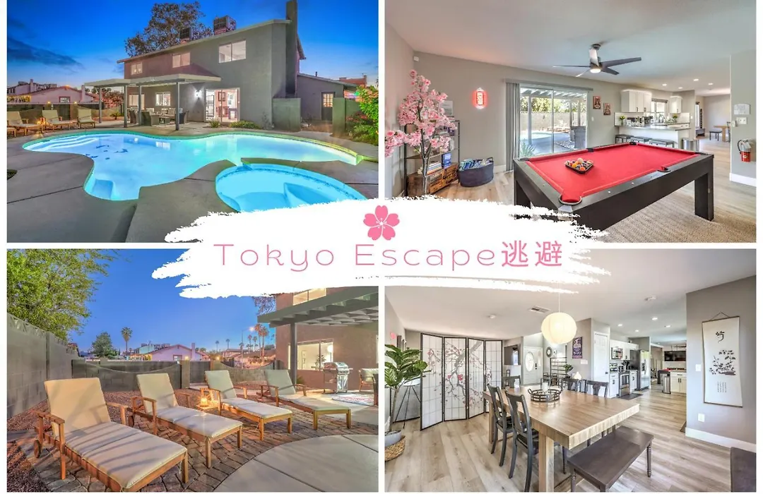 Offering a private swimming pool as well as a patio for guests to unwind, the 3-bedroom 静tokyo Escape, Heated Pool, Spa, Dog Run, Pool Table Las Vegas villa is situated in the West of the Las Vegas Strip district of Las Vegas. Offering Wi-Fi, this Las Vegas holiday home is located about 10 minutes by car from the Bellagio Conservatory & Botanical Gardens.